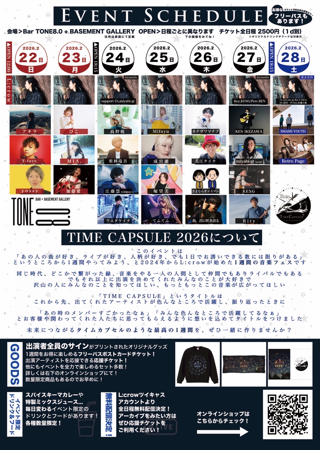 - 2026/02/27 (金) 18:45大阪府 BAR TONE 8.0+BASEMENT GALLERY